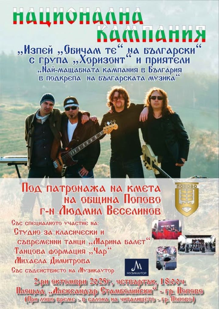 От Община Попово уведомяват, че поради неблагоприятните метеорологични условия, концертът на рок група „Хоризонт“ ще се проведе в салона на НЧ „Св. св. Кирил и Методий-1882“ гр. Попово от 18:00 ч.