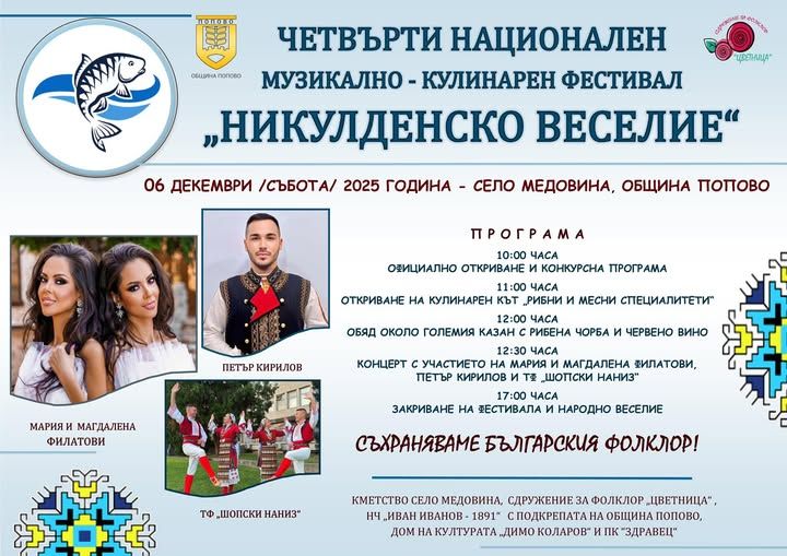 Започва подготовката за четвъртото издание на Националния музикално – кулинарен фестивал „Никулденско веселие“, който тази година ще се проведе на 06 декември в село Медовина.