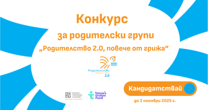 Фондация „Работилница за граждански инициативи“ (ФРГИ) отправя покана към родителски групи от цялата страна да предоставят свои проектни предложения за финансова подкрепа по програмата „Родителство 2.0, повече от грижа“. Представените предложения се очаква да допринасят за предотвратяване на разделянето на деца от техните семейства чрез застъпничество, общностна мобилизация и утвърждаване на гласовете на родителите в процеса на промяна на политики, програми и услуги, насочени към децата и семействата. Програмата търси родителски групи, свързани чрез общи ценности и стремеж за социална промяна.