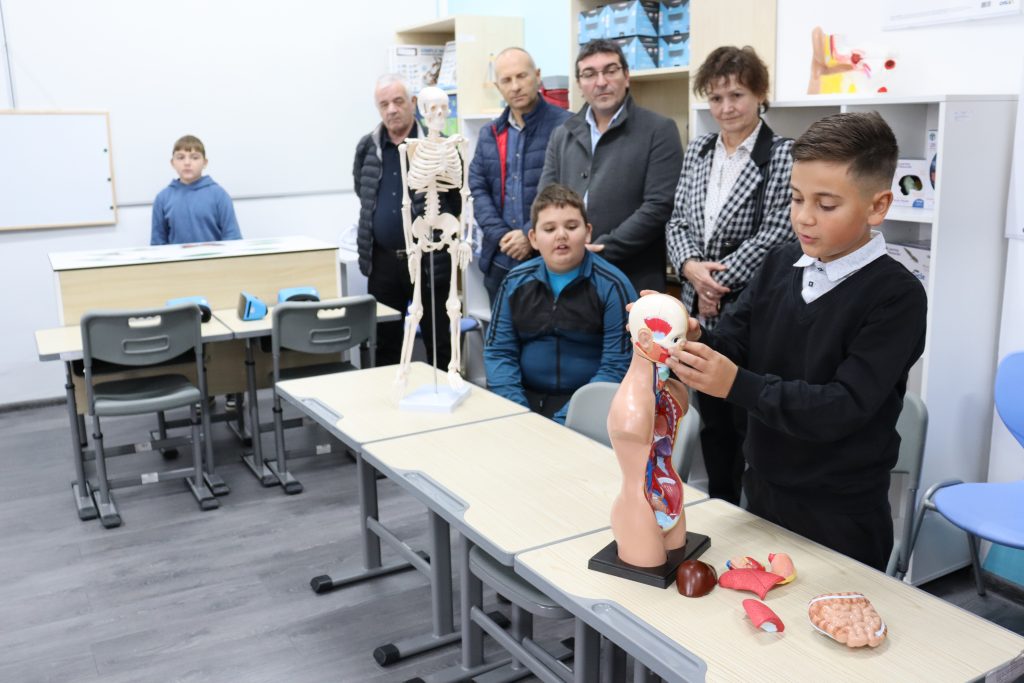 Ученици от V и VI клас демонстрираха пред гостите какво са научили и как използват новото оборудване в часовете по природни науки. Те представиха опити за измерване на температурата на кипяща вода, наблюдение на процесите на топлопроводност и конвекция и изследване на силите на триене. С интерес и увереност децата разказаха за устройството на човешкия скелет и други аспекти от функционирането на човешкия организъм. Впечатляваща бе демонстрацията с микроскоп, който чрез камера е свързан с голям екран, така че целият клас може да проследява наблюденията в реално време.
