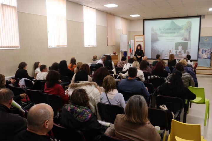 Дейностите по темата продължиха с практическо представяне на опит от ОУ „Акад. Даки Йорданов“ гр. Омуртаг. В рамките на практикума бяха споделени конкретни примери за ефективни действия при ограничен ресурс от специалисти – включително как училищният екип изгражда доверие у учениците и осъществява съвместни дейности с родители и външни партньори. Внимание беше отделено на методи за ранно разпознаване на рискови сигнали, изграждане на позитивна училищна култура и вътрешна координация за справяне с прояви на агресия.