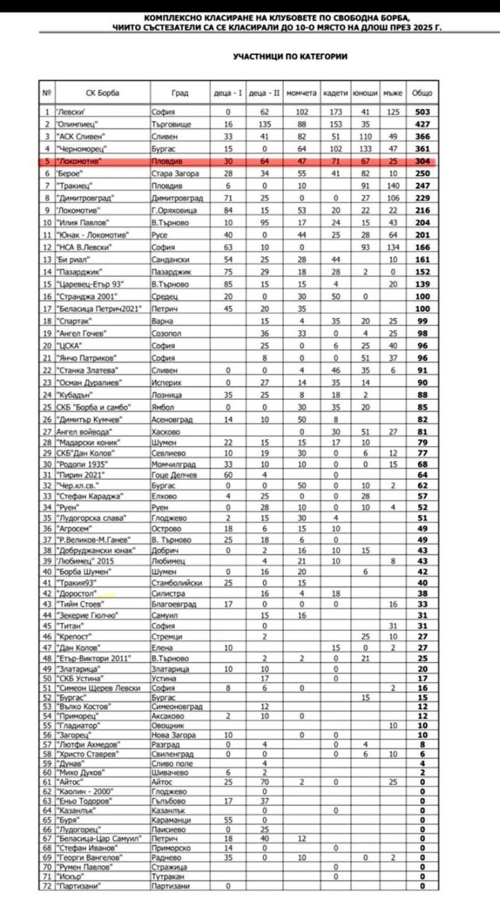 🤼‍♂️КОМПЛЕКСНО КЛАСИРАНЕ НА КЛУБОВЕТЕ ПО СВОБОДНА БОРБА,ЧИИТО СЪСТЕЗАТЕЛИ СА СЕ КЛАСИРАЛИ ДО 10то МЯСТО НА ДЛОШ ПРЕЗ…