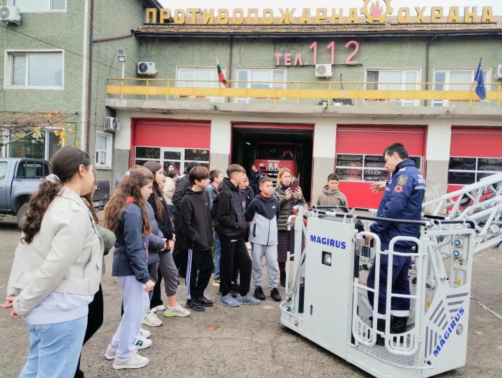 По време на посещението седмокласниците се докоснаха до ежедневието на огнеборците и се запознаха с оборудването, използвано при инциденти. Командирът на екип Тодор Тодоров им предостави възможност да сложат противопожарна каска и да разпънат противопожарен маркуч, като обясни основните правила за превенция на пожари в дома и в училище. Посочи важността на телефон 112 при възникванал инцидент.