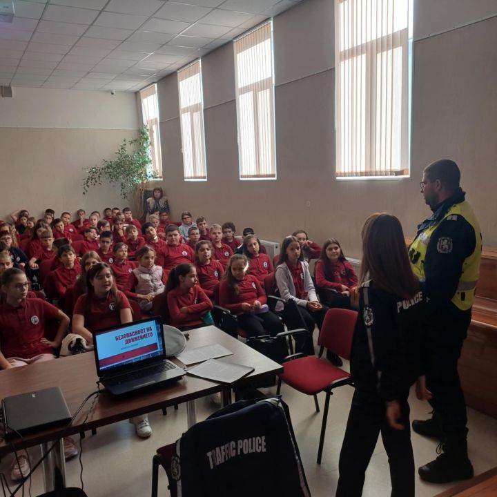 Полицейските инспектори Ренета Трифонова и Николай Стайков от сектор „Пътна полиция“ в ОДМВР-Търговище по покана на училищното ръководство на Първо основно училище „Христо Ботев“ в гр. Търговище гостуваха на 4 паралелки четвъртокласници и техните класни ръководители в обявения там Тематичен ден по безопасност на движението. Такъв ден в учебното заведение провеждат два пъти през учебната година, а безопасното поведение на децата на пътя обсъждат и с родителите на специална тематична родителска среща.