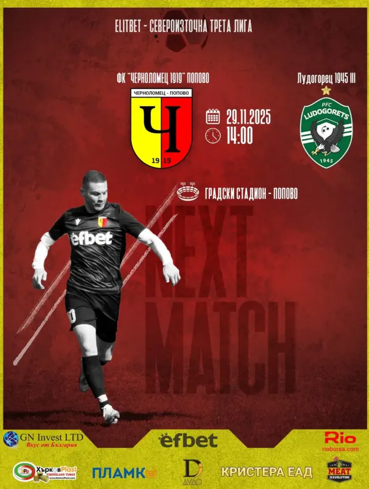 Последният домакински мач на Черноломец (Попово) за 2025 година тази събота (29 ноември) подкрепя международната кампания „Зонта казва НЕ на насилието срещу жени“.