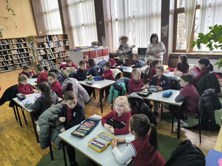 Малките ученици изработваха коледни картички с голямо старание и вдъхновение, докато слушаха приказки за Рождество Христово, четени от библиотекар, и се наслаждаваха на весели коледни песни, които допълваха празничната атмосфера.